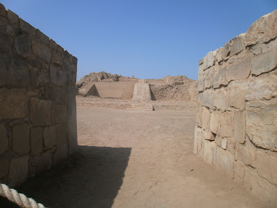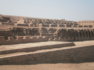 All of the above were highlights from the indoor museum, displaying finds from the Pachacamac archaeological site. The following are pictures of the actual ruins, which we were fortunately able to tour by bus, and get out to walk around at the important stops (meaning, we didn't fry in the sun. This is a desert we're talking about, here).