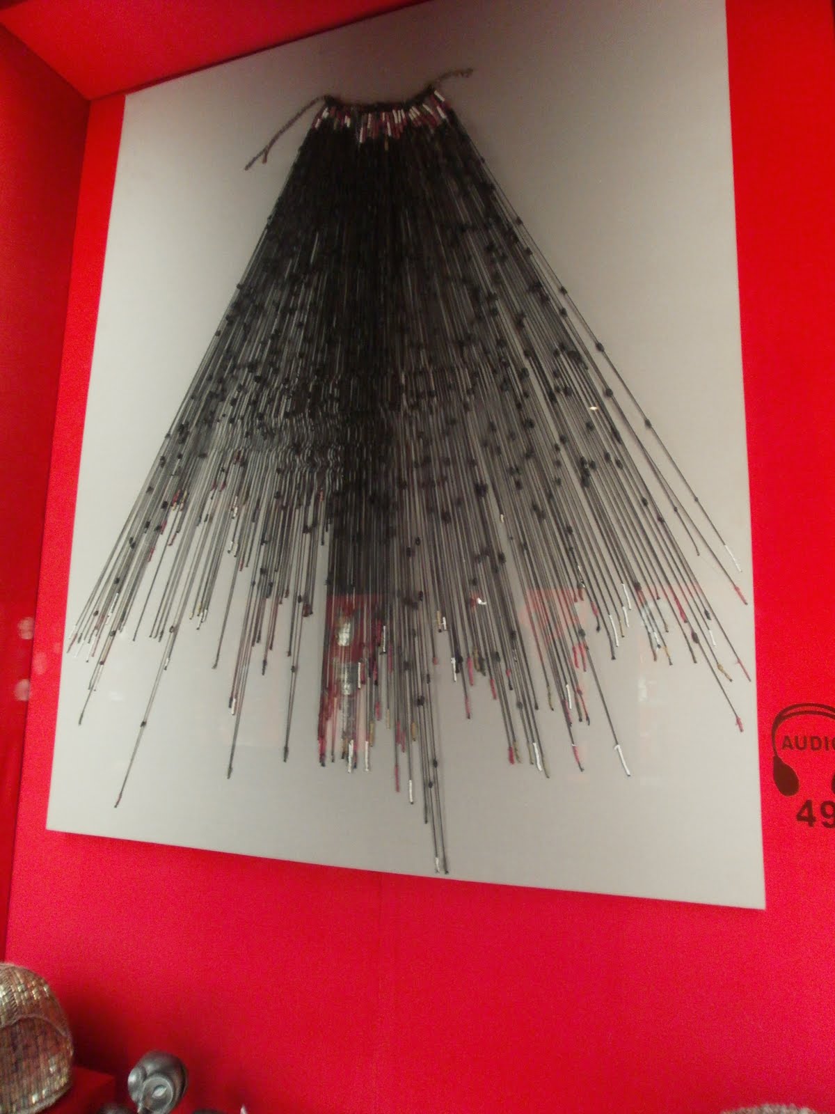 Perhaps the most famous piece in the Museo, this is a ceremonial knife known as a "tumi," and it is gold and turquoise, and about a foot tall. |